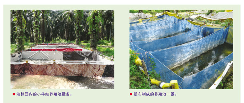 牛蛙有上10个品种甚至更多,但并非每一种都有商业价值。然而在这油棕园内养殖的成蛙不仅能成为人类的美食,其小牛蛙则是金龙鱼的上等食品也是垂钓者乐于采用的活饵。