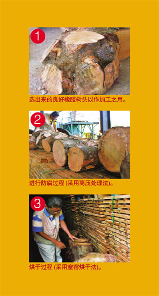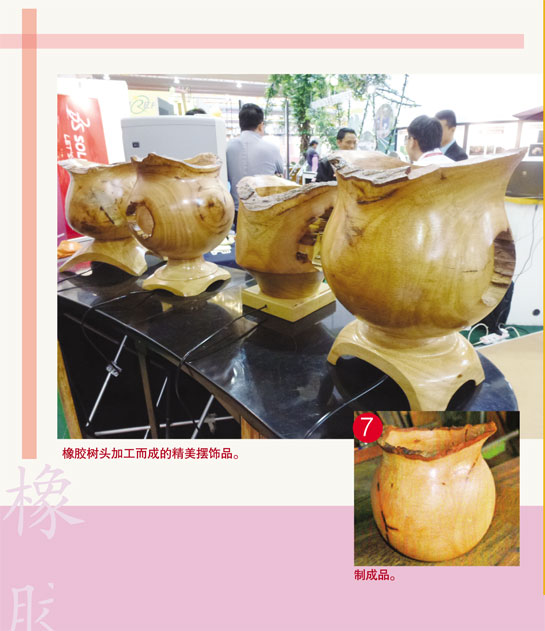 国内橡胶树木头多得是,平时看来没有什么用处,也不值钱,其实也隐藏着商机。有心人可将它开发成为有价值的摆饰品,甚至家居用具,利润性不俗,说不定是一条财路呢!