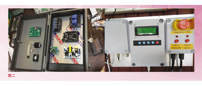 图二则显示整个系统的原型,全部设置齐全地连接,业者可以轻松地以手机或电脑无线上网监控操作过程,如有需要,能随時调整各个作业。这个系统已在哈蜜瓜园测试以测验其耐用性。此系统亦适用于辣椒、水培作物及番茄等,虽然这系统起先专为哈蜜瓜种植而设计。