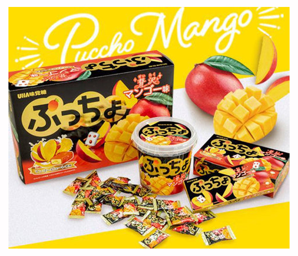 Puccho 是日本糖果的热门品牌,包装上印有可爱的水果人物。他们的宫崎芒果味软牛奶糖里含有多汁的软糖。