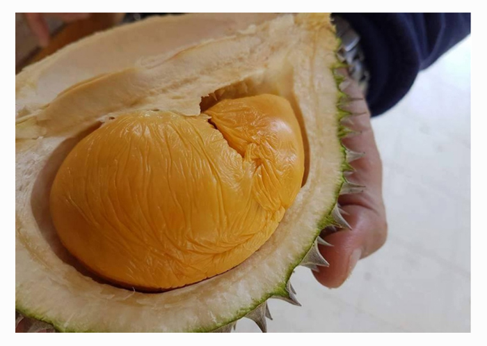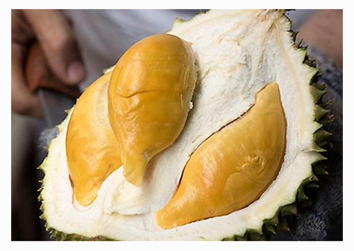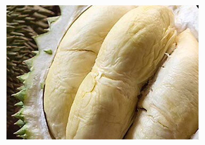 奶油榴莲,质地细腻,呈红色奶油果肉。这种榴莲上的刺相当锋利,果壳又大又圆,颜色金黄。因为果肉比其他类型的马来西亚榴莲更硬,它很容易从种子上滑落,确保你不会弄得一团糟。