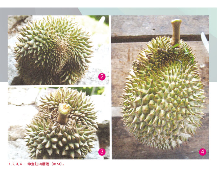 1987年共有13个榴莲品种 (D155 – D167) 在农业局注册,当中有4个品种来自槟城 Balik Pulau,坤宝红肉 (D164) 即是其一。它被誉为当地最佳的榴莲,果肉有 ‘炎红’ 般的称号,作为对这品种至高的称誉。坤宝的注册名称为 Ang Bak 或 Isi Merah,不是坤宝,它被套上这名称乃因这母树生长在原地主李坤宝的园里。