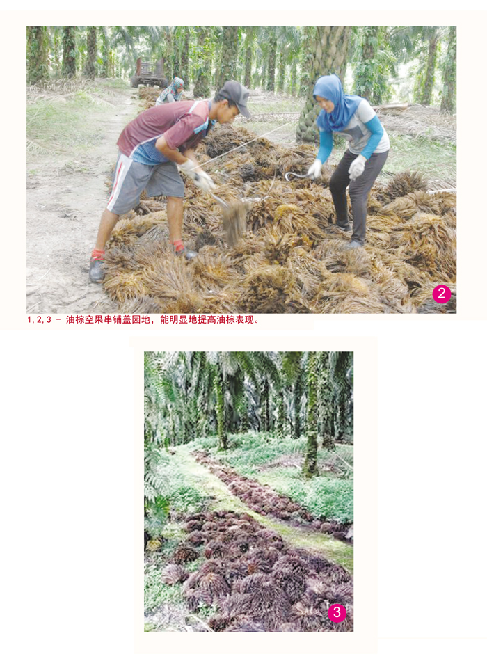 许多研究已显示油棕空果串铺蓋园地使到果串产量增加了。最大的因素来自土壤的改善。再说空果串属于有机质,铺蓋园地后增加了土壤有机质,符合环保种植的条件。这也是大家期待看到的好现象。园丘作物尤其油棕施放化肥的用量极高,长久之后土质退化,酸性度提高,如今有空果串这量大且相等于免费的物质可用,可说是天赐之物,善加利用即可提高油棕产量。