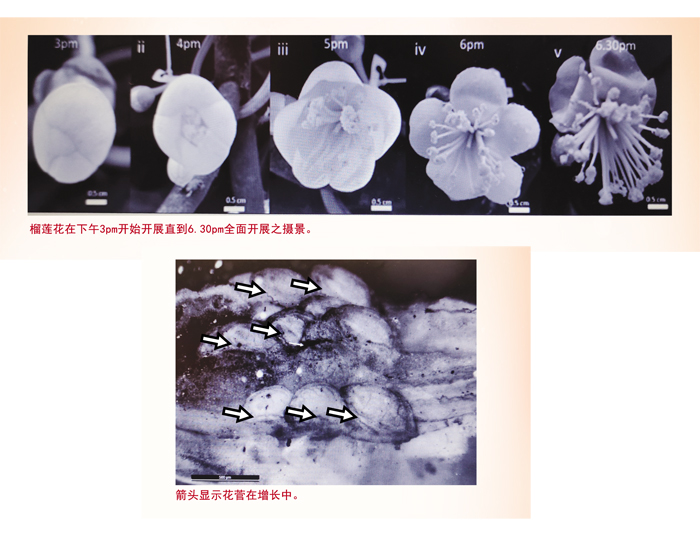 花朵从下午3.00pm逐渐开展并在6.30pm完全开展。雌花柱潮湿及充满黏质表示已准备好接受花粉。然而花粉襄迟至7.30pm才开始爆开。首个钟里的花粉干燥,一小時后才潮湿及有黏质,此時的花粉可用性最佳。由于双双都充满黏质,这点就说明授粉就须要授粉媒介来进行方可,风及水是无法将花粉传授给雌花。此试验采用人工授粉,因此与其他授粉媒介体无关。